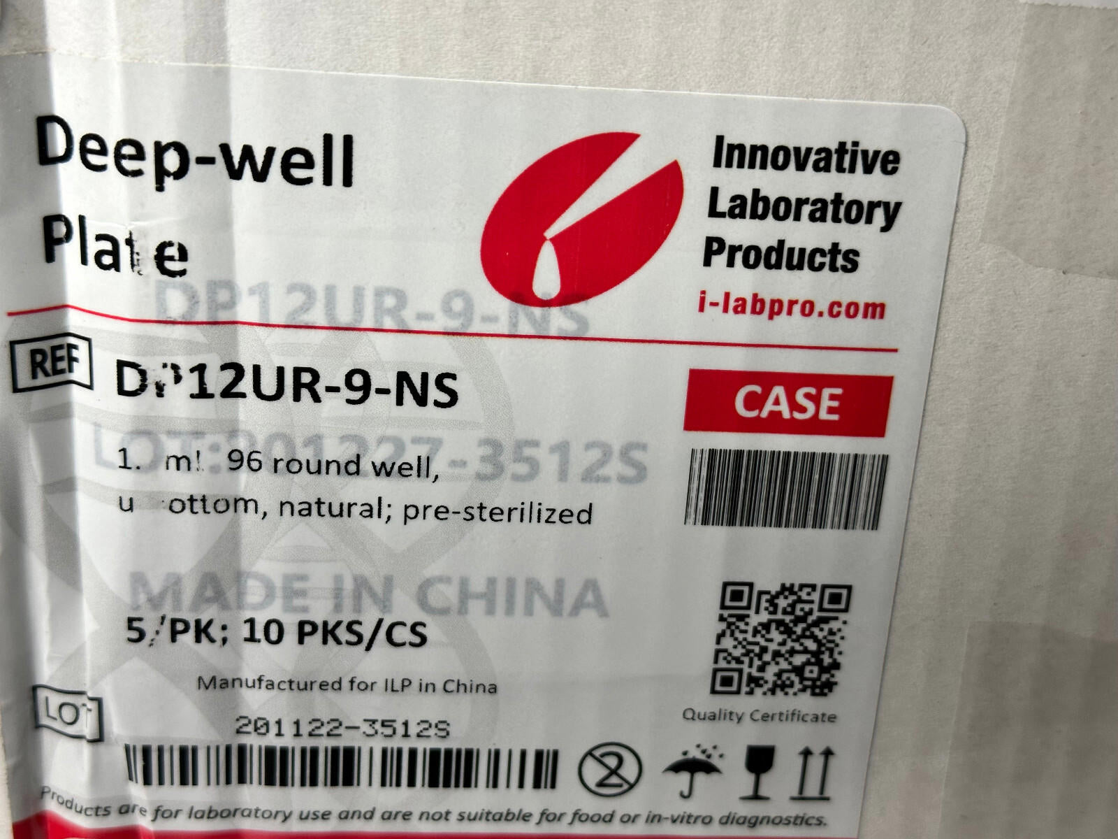 1.2mL 96 Round Well Plate Sterile U-Bottom Innovative Lab DP12UR-9-NS (50/Case)