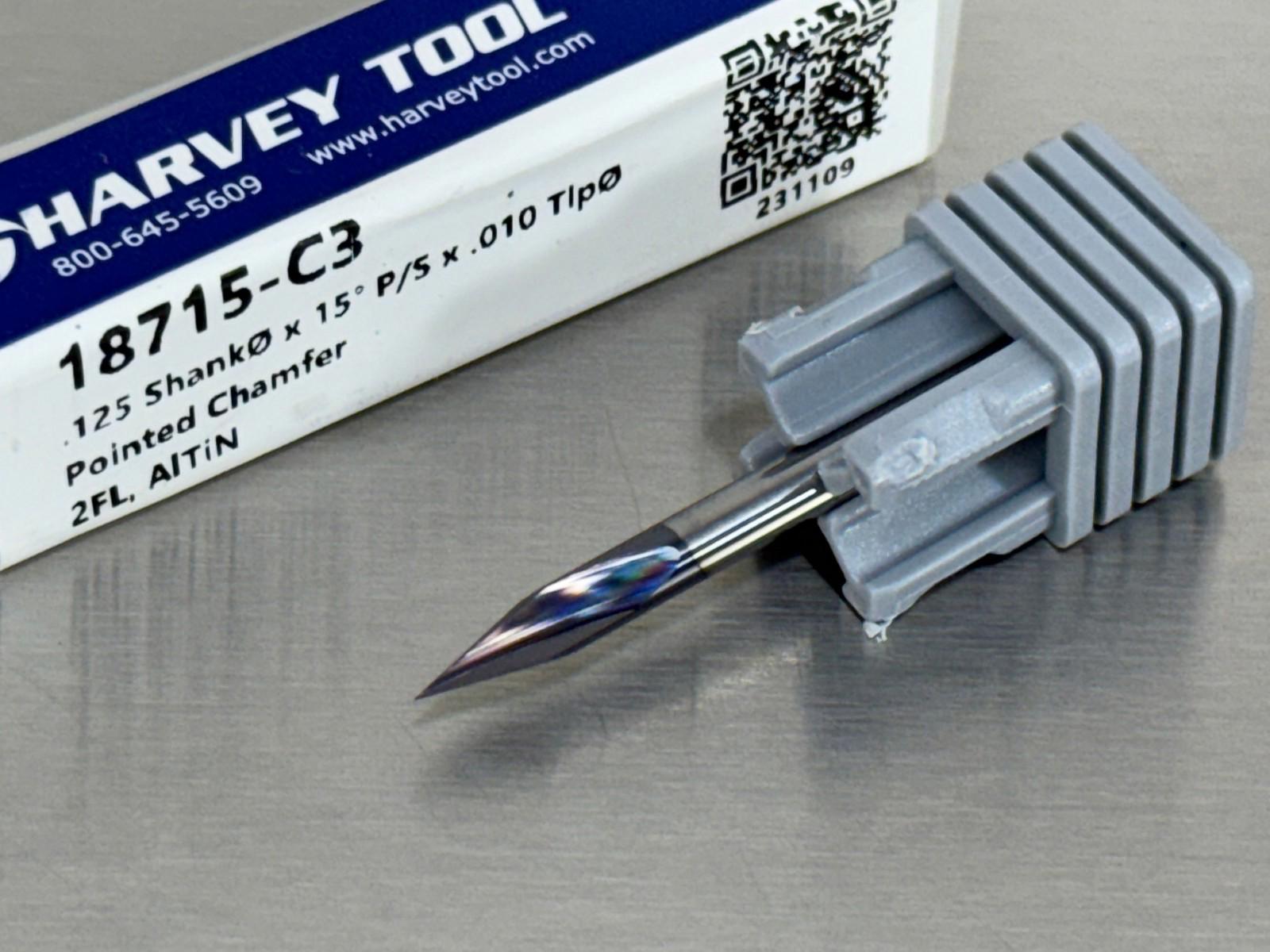 (2) Harvey 15° Carbide Chamfer Cutter .010" Pointed Tip 18715-C3
