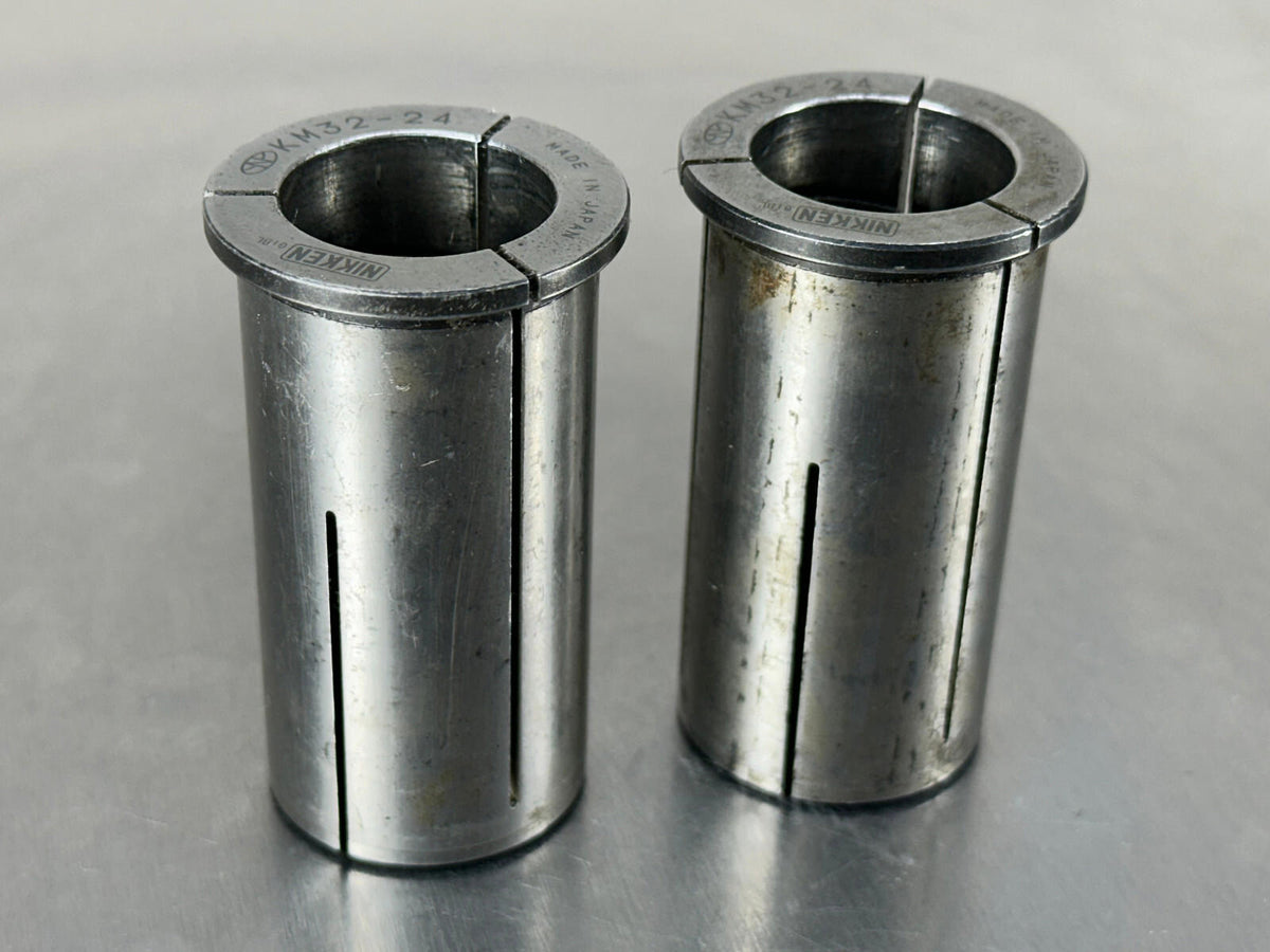 (2) Nikken KM Collet Sleeve 32mm OD x 24mm ID Milling Chuck KM32-24