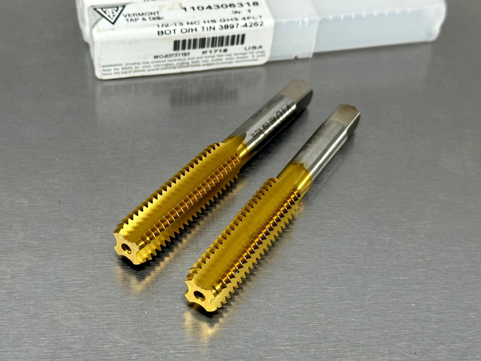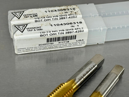 (2) Vermont 1/2-13 Tap GH3 Bottom Oil Coolant Hole 4 Flute TiN