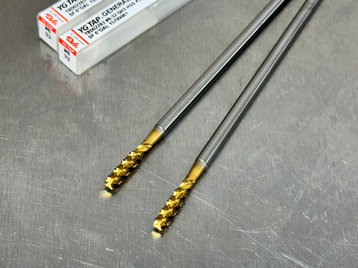 (2) YG1 #8-32 Extension Tap Spiral Flute H3 6" OAL, 3 Flute Bottom 8-32 T8D02283