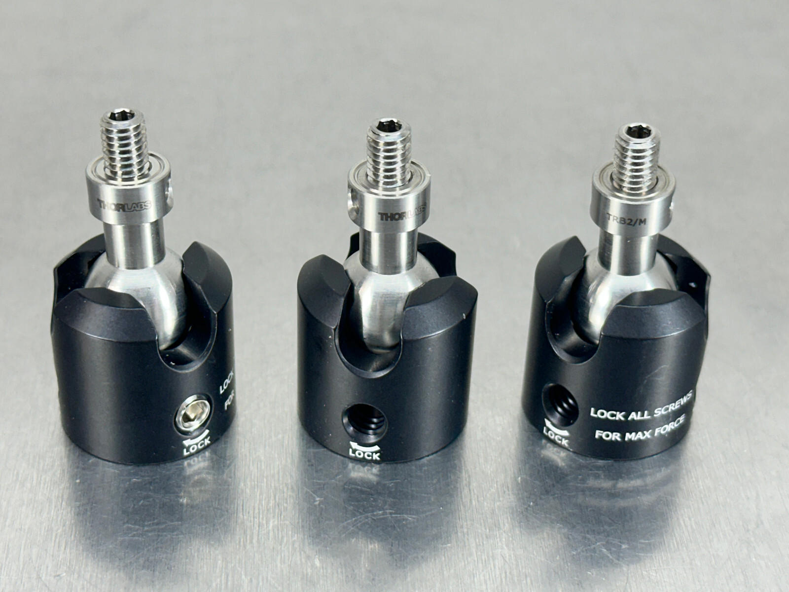 (3) Thorlabs TRB2/M Locking Ball and Socket Mount M6 Threaded Base