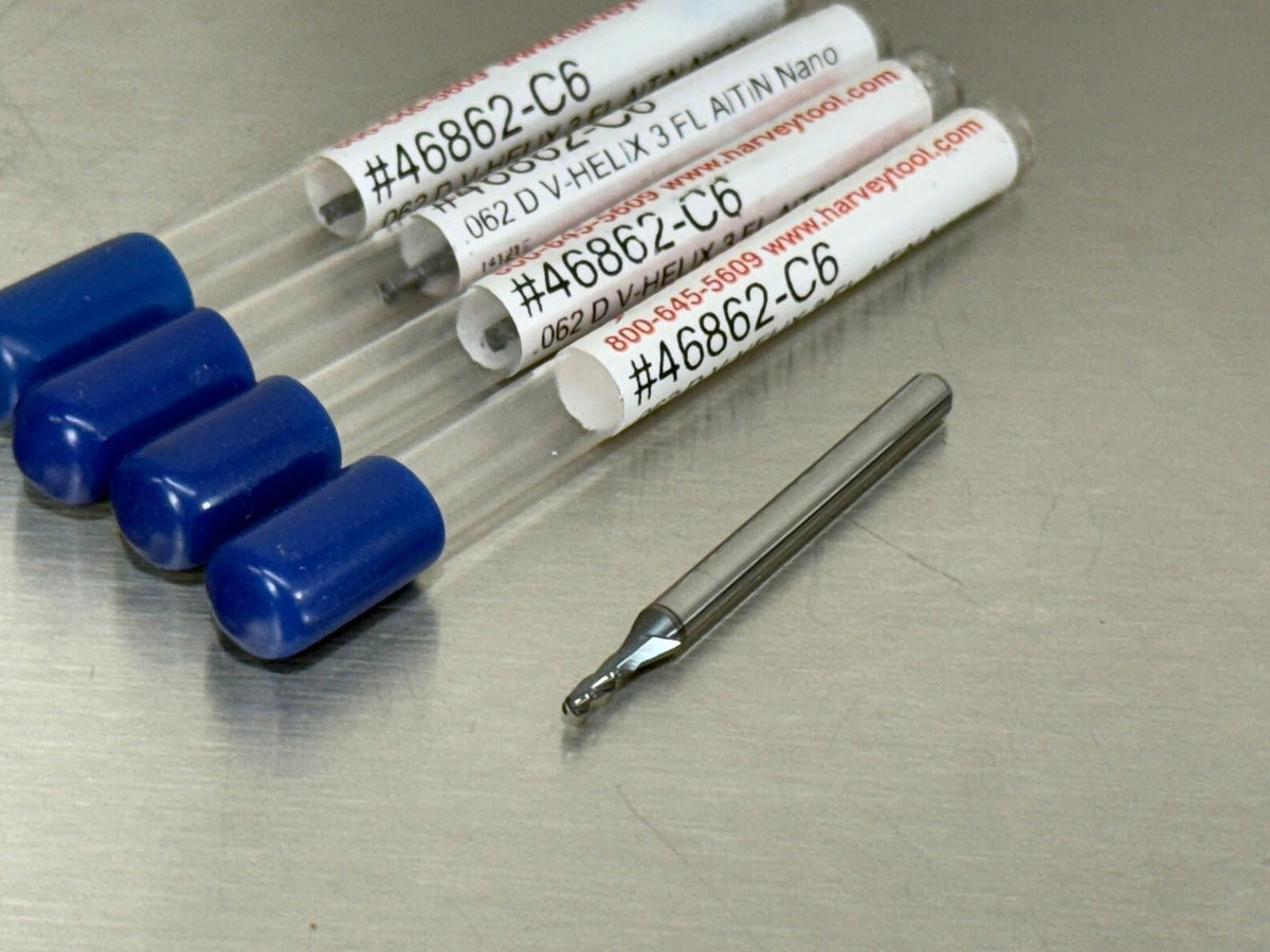 (4) Harvey 1/16" Carbide End Mill Variable Helix for High Temp Alloy 46862-C6