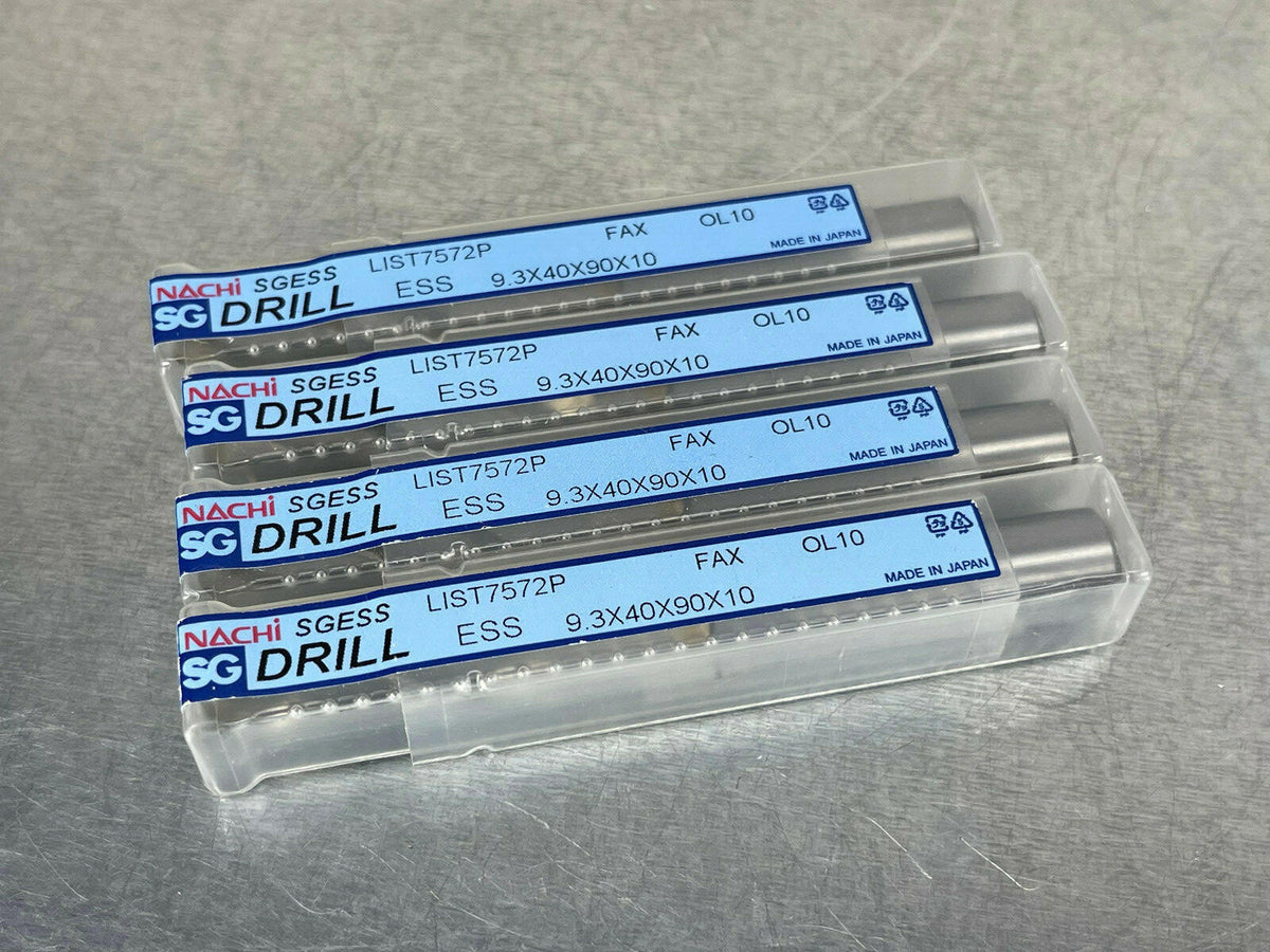 (4) Nachi 9.3mm Drills Cobalt Screw Machine 7572P Powdered Metal