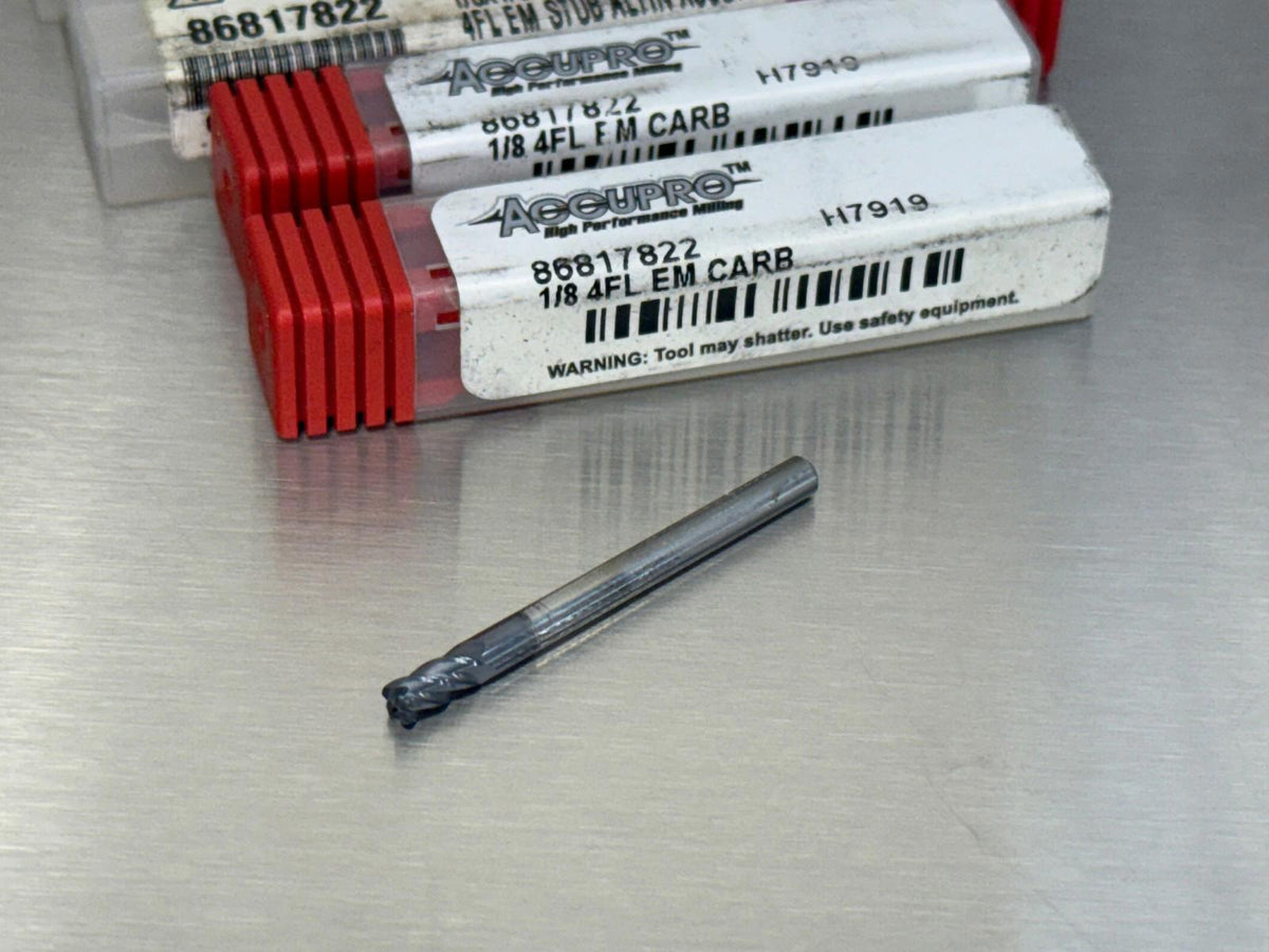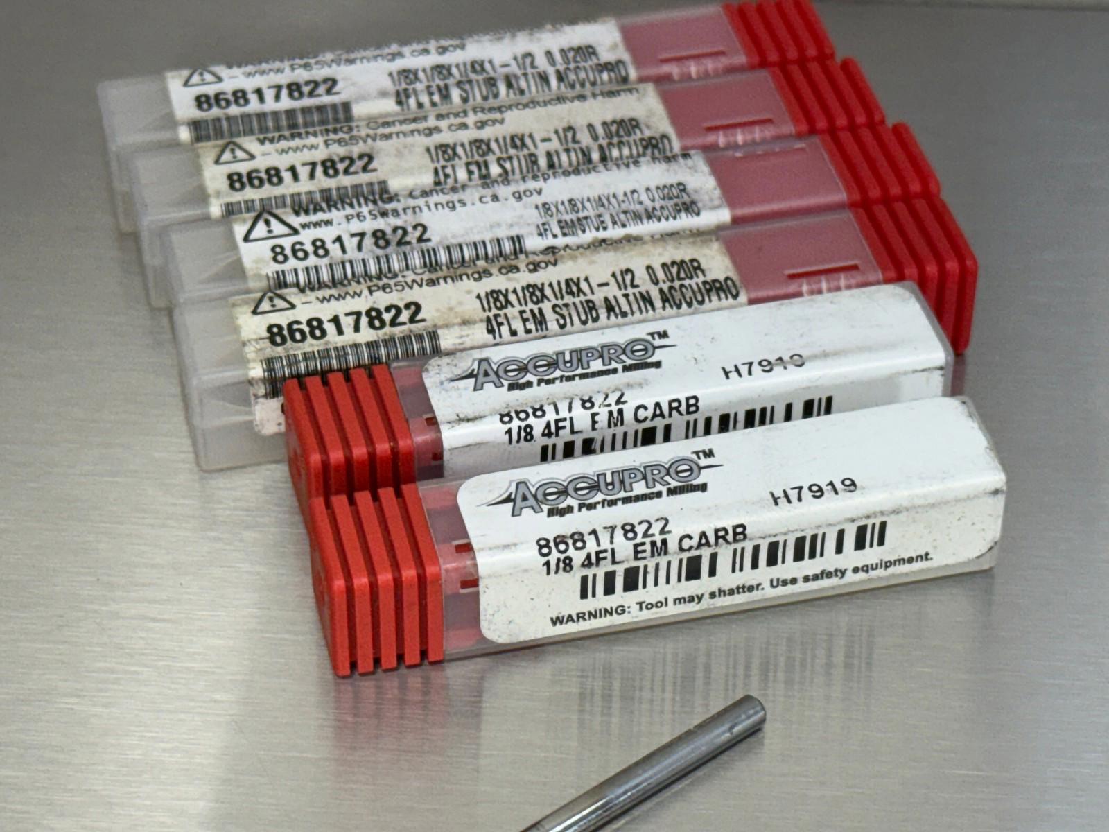 (6) Accupro 1/8" Carbide End Mill .02" CR 4FL 86817822