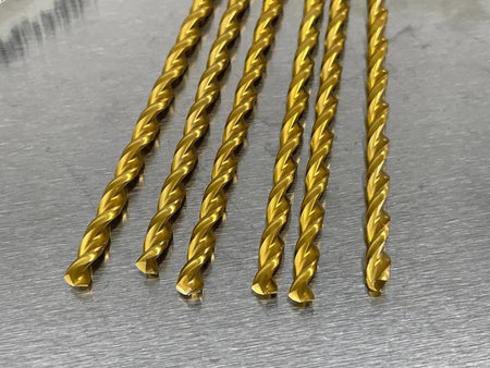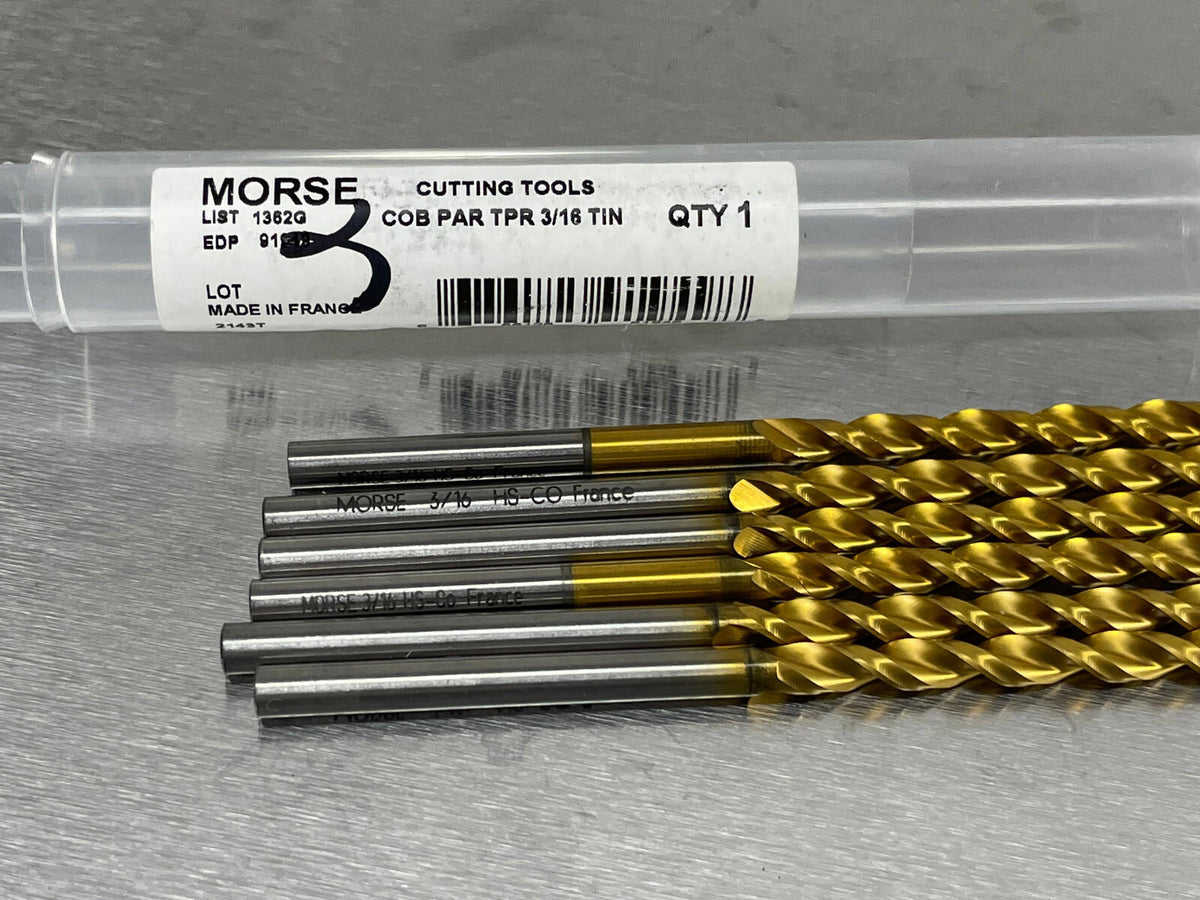 (6) Morse 3/16" Cobalt Drill, Taper Length, TiN Coated, HSSCo5