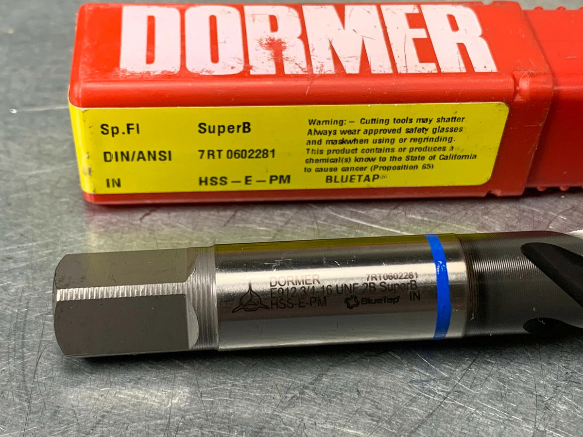 Dormer 3/4-16 UNF-2B Machine Tap, 4FL Spiral, SuperBe Blue Tap 7350368
