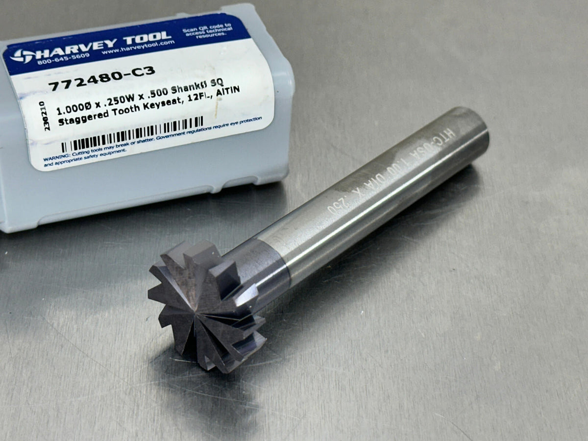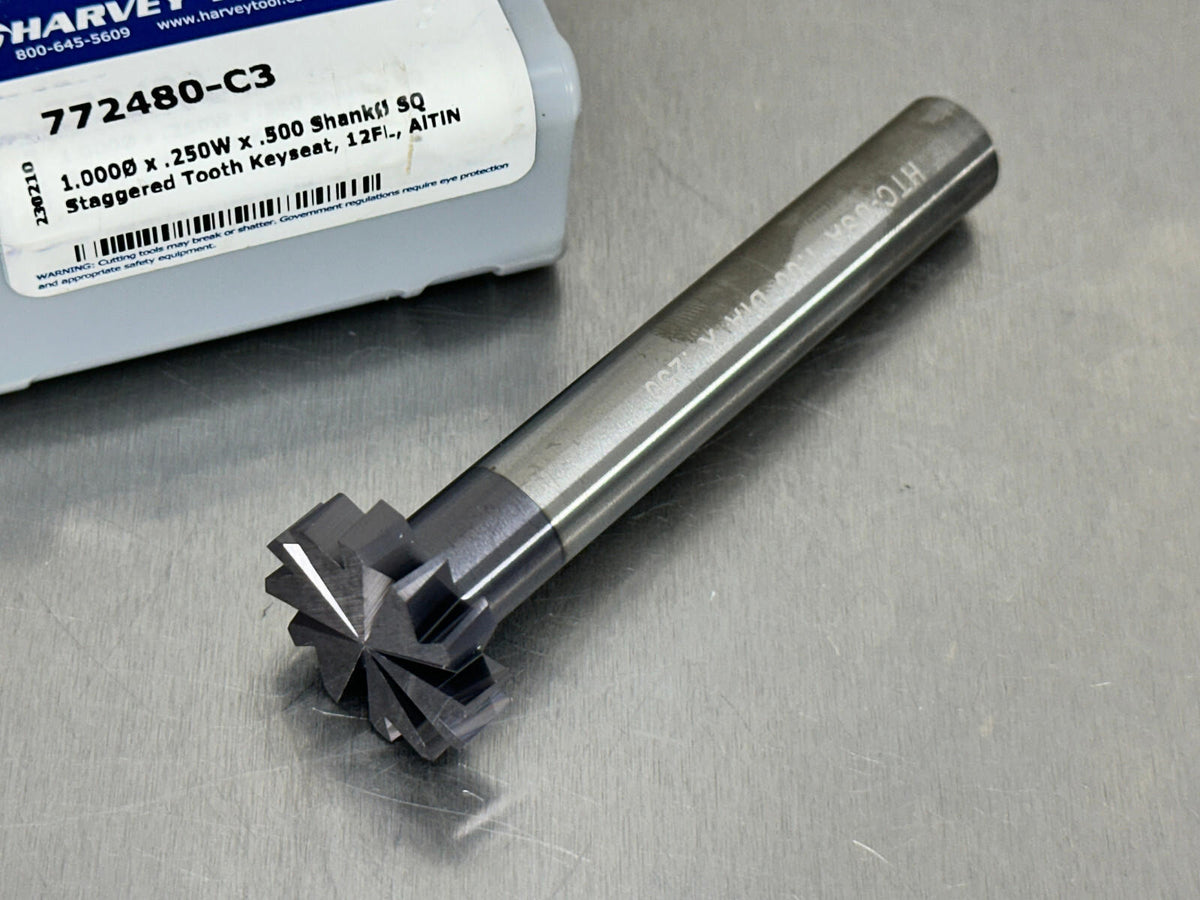 Harvey 1/4" Carbide Keyseat Cutter 1" Dia Staggered Tooth 12 Flute 772480-C3