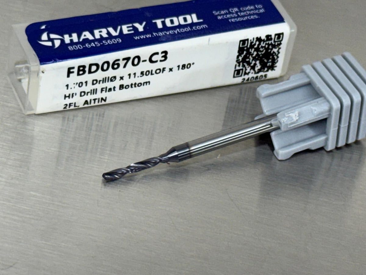 Harvey 1.701mm Solid Carbide Drill Miniature Flat Bottom FBD0670-C3