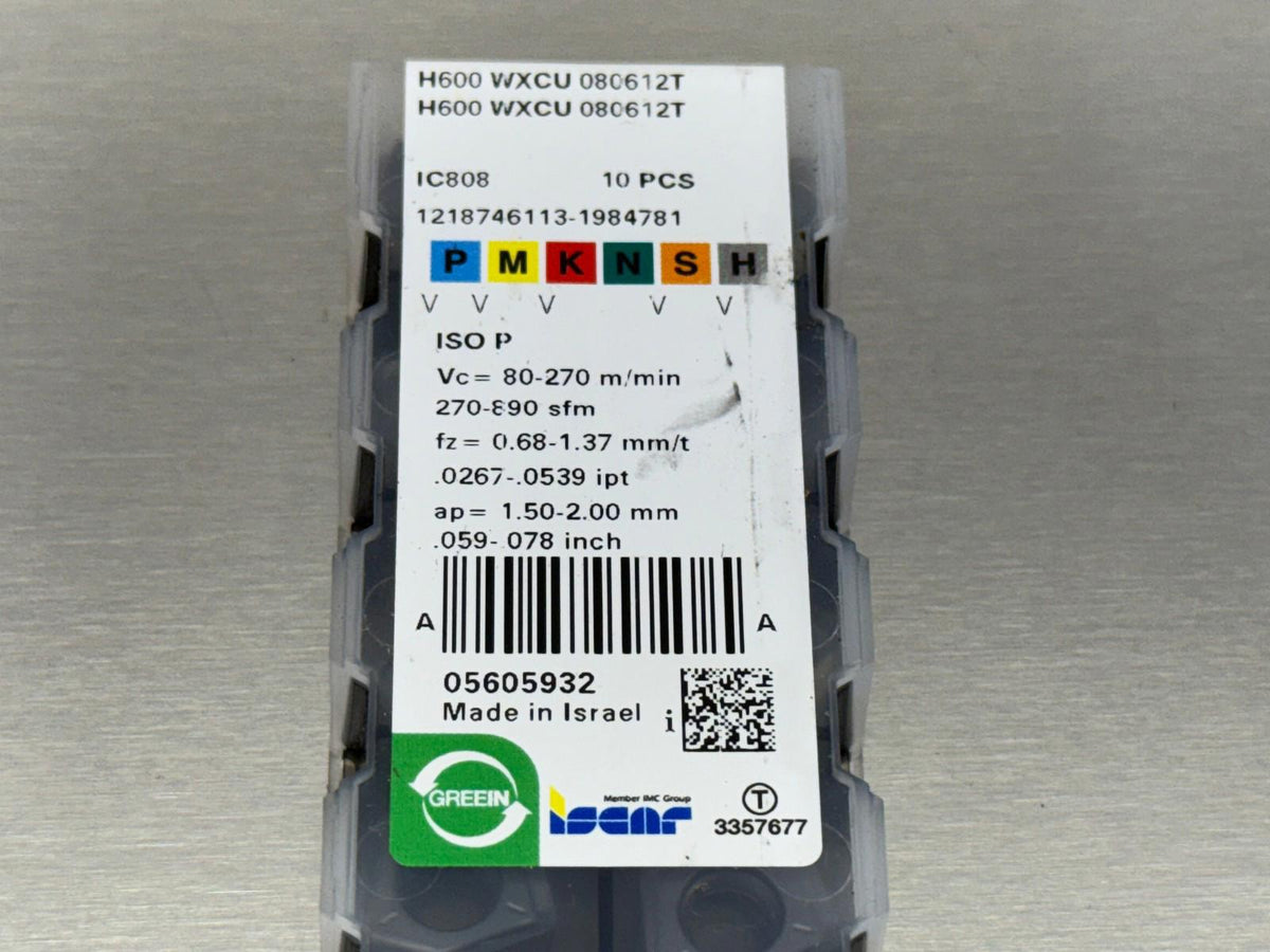 Iscar H600 WXCU 080612T IC808 Carbide Insert (Pack of 8)