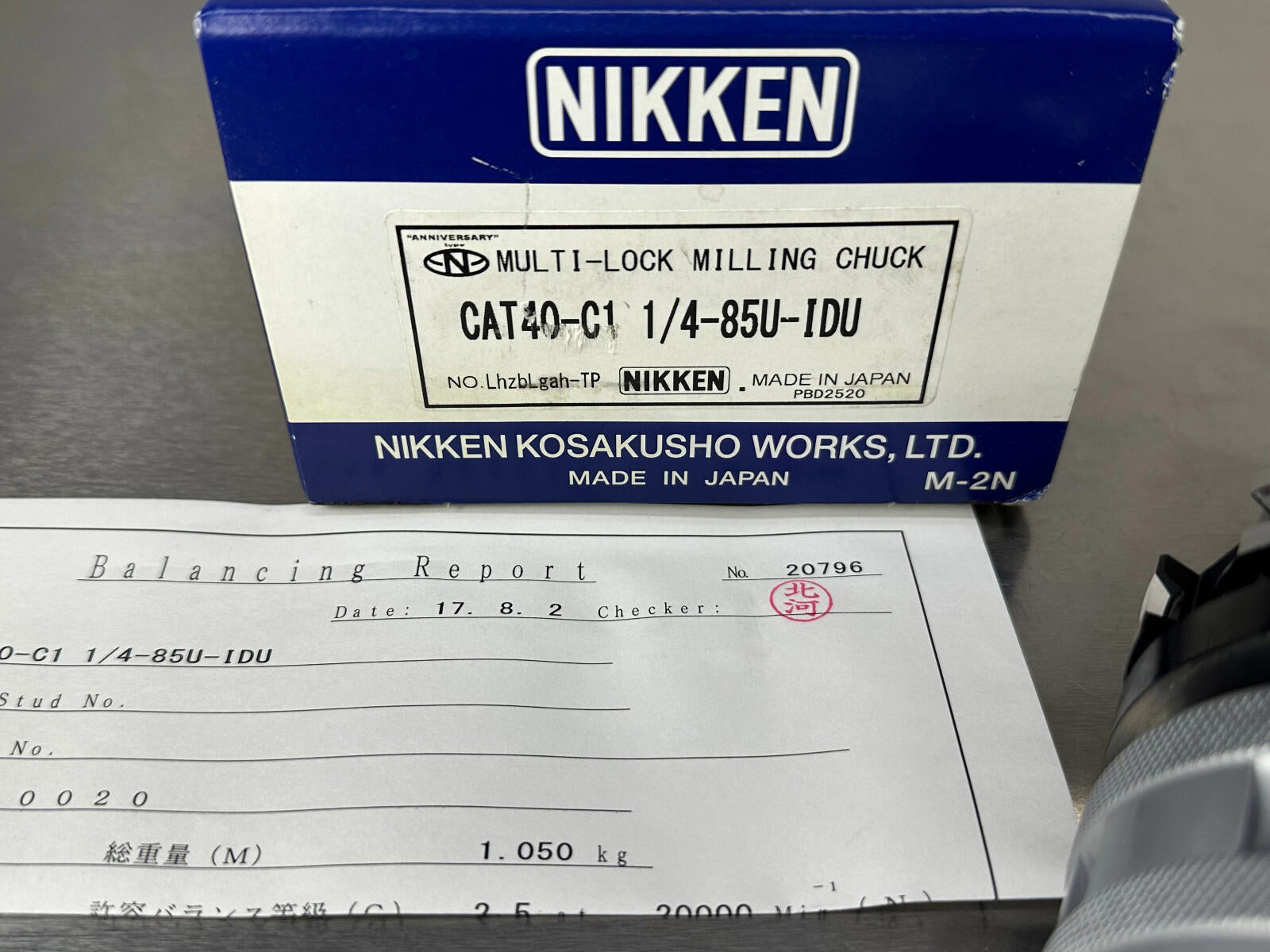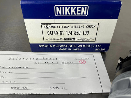 Nikken CAT40 Milling Chuck 1-1/4" KM1-1/4 Internal Coolant CAT40-C1 1/4-85U IDU