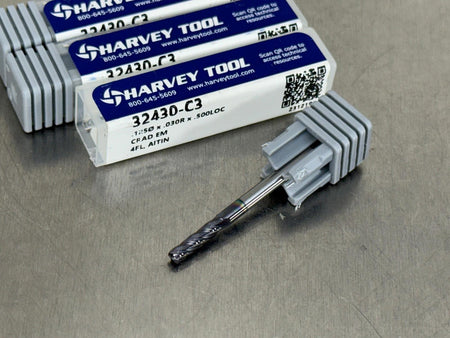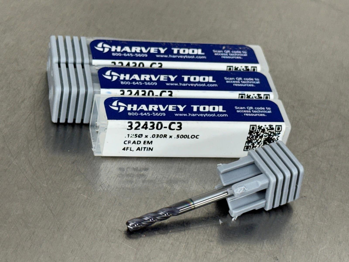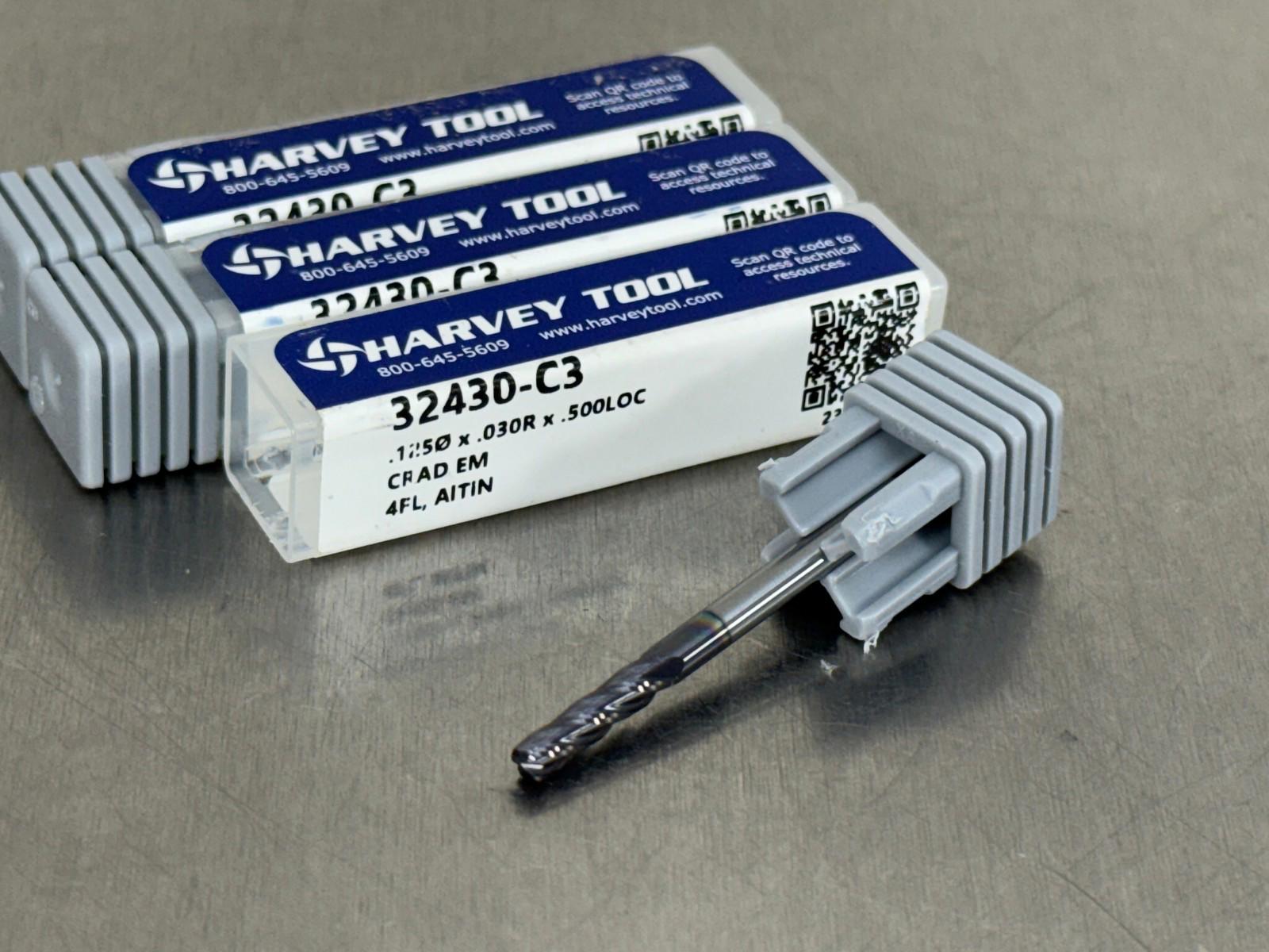 (Qty 3) Harvey 1/8" Carbide End Mill .03" CR 32430-C3