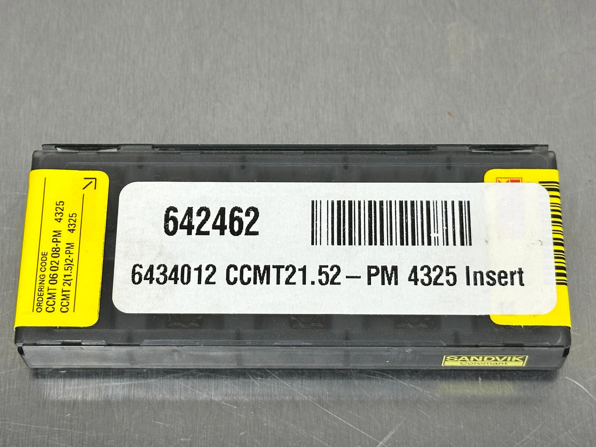Sandvik CCMT 2(1.5)2-PM 4325 Carbide Insert CCMT 06 02 08-PM (Pack of 10)