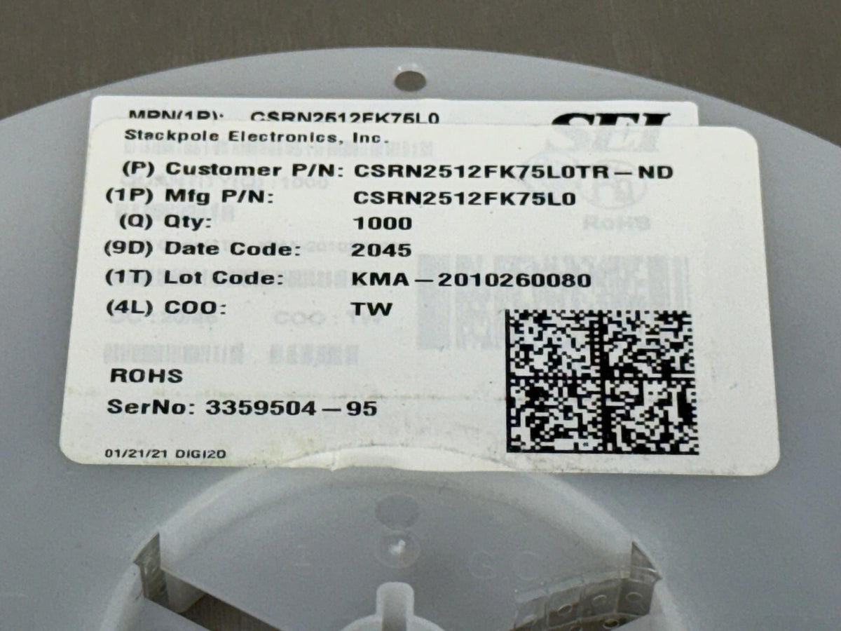 Stackpole CSRN2512FK75L0 Chip Resistor Surface Mount (Qty 1000)