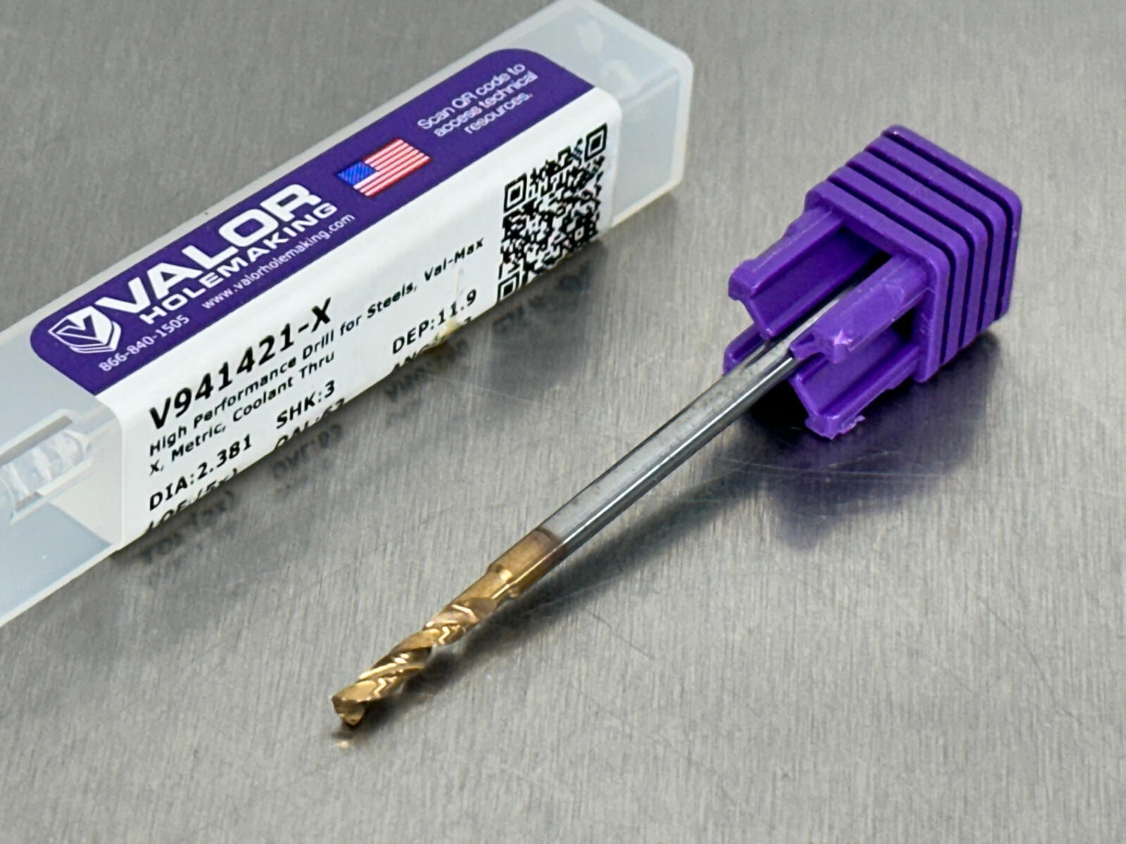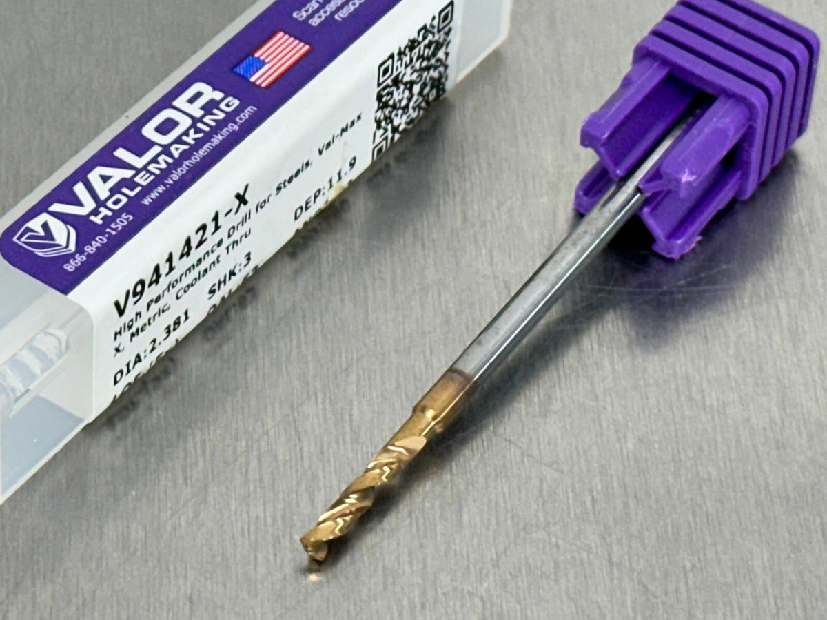 Valor 2.381mm Solid Carbide Drill Coolant Through 5xD USA Made V941421-X